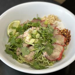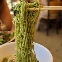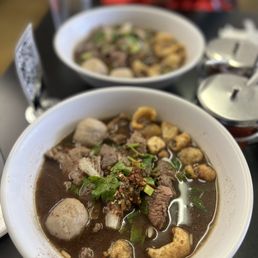 An establishment that's been in Thai for over 35 years and community history. It definitely give the homey family-owned atmosphere. Parking lot is limited and then there's street parking but going in before 12PM, parking should be OK. From the Yelp reviews and the server recommendations, we ordered the Boat Noodles with everything and Jade Noodles. I think the Boat Noodles delicious. Very flavorful broth with at least ~2 pieces of each type of meat for the 'everything' order. The spice level is actually spicy at level 4. I do wish there was more broth to eat the noodles with, otherwise these boat noodles are very good. The Jade Noodles, I actually think are a skip. It is more mild in flavor but the noodles also kind of stick together and the meat wasn't super juicy to me. Another recommendation was the Pad Kra Pao which I got with beef but it was sliced beef rather than the photo (which is probably ground pork). I asked which protein would be best with it and they said all. The dish was all one note and even though there was basil in there, you didn't really taste it like usual. No longer cash only. Would come back for the boat noodles and to to try other items!